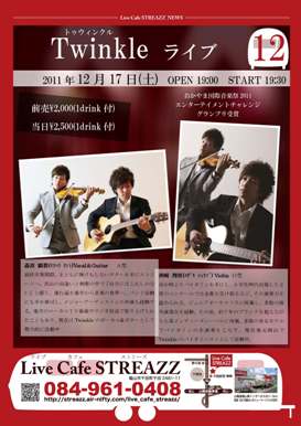 おかやま国際音楽祭2011 エンターテイメントチャレンジで見事グランプリを受賞したTwinkleがストリーズにてライブ決定!!