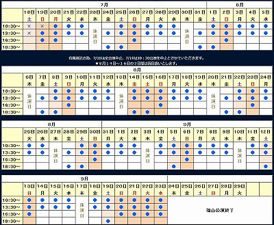 2015年7月18日(土)から9月23日(水)までの期間となり、木曜日は休演日となっています。