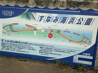 すなみ海浜公園には北側と南側と二つの砂浜があり、砂浜の両側と間に駐車場があります。