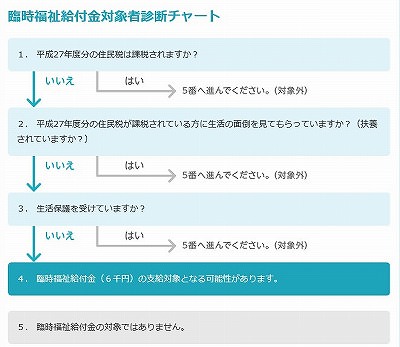 2015年度分の住民税が非課税で、2015年度の住民税を払っている人の扶養に入ってなく、生活保護を受けていなければ支給対象ということですね。