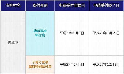 臨時福祉給付金:2015年9月28日-2016年1月29日